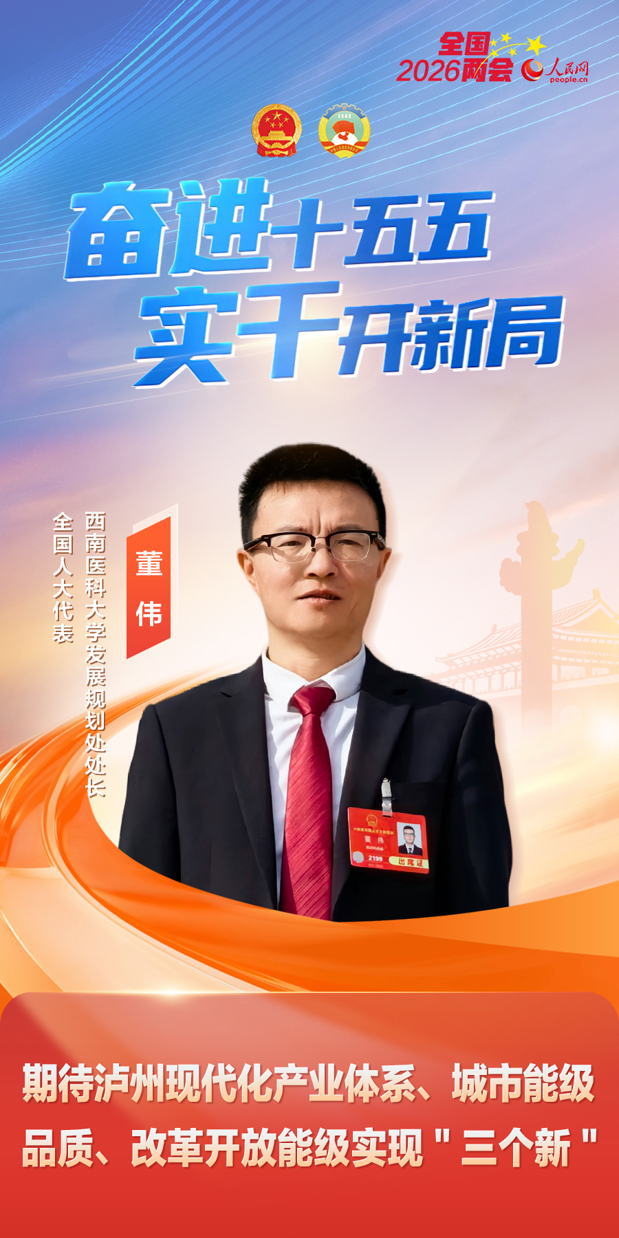 做為來自教育、科技戰線的全國代表,配合建設川南省域經濟副核心,切實扛起“挑大梁”沉担的體現,面對錯綜復雜的外部環境,等候開放能級實現新冲破。您對瀘州未來5年有哪些等候?