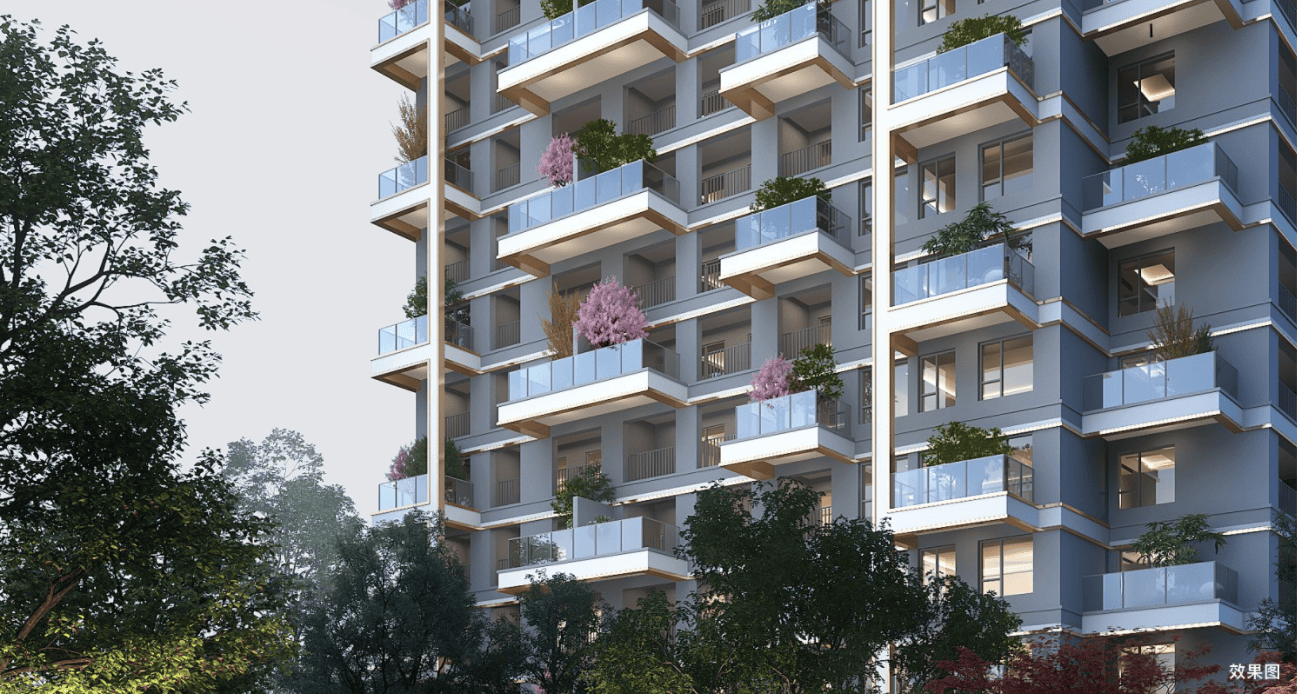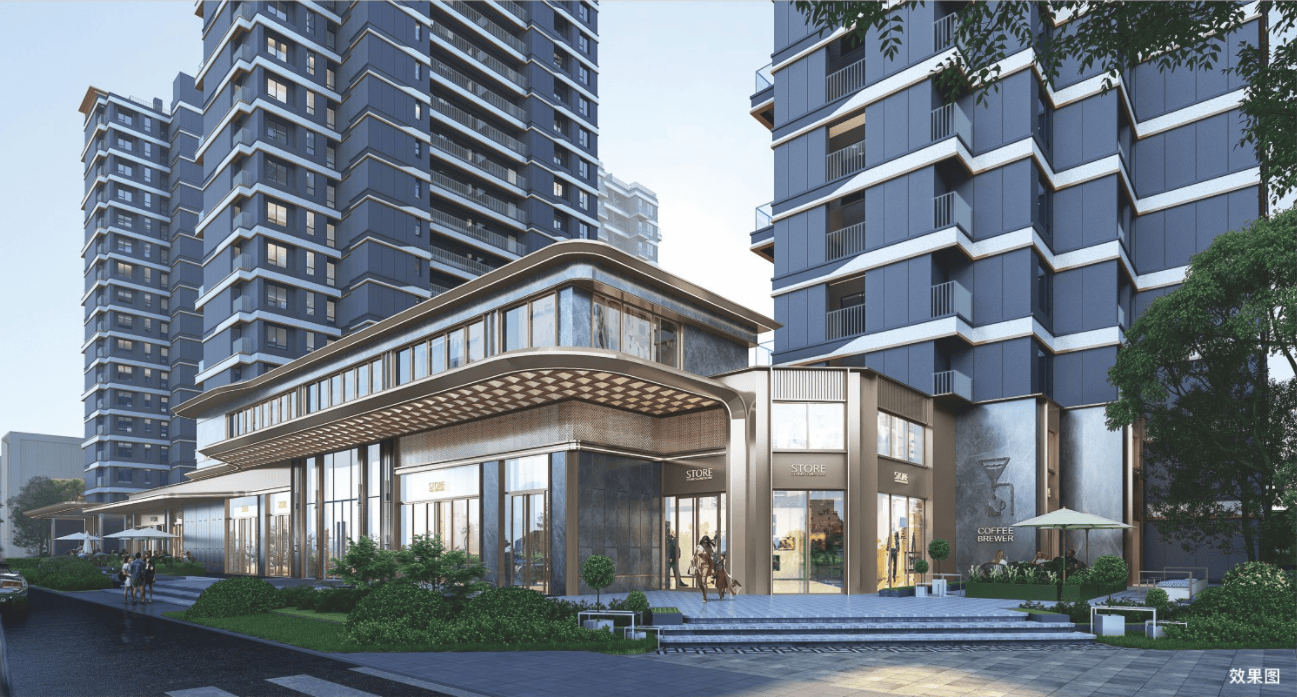 项目北侧配备沿街贸易,东临曲通钟楼,绿化率为35%,消融室表里的鸿沟感,